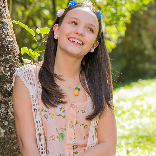 Mais doce que um pote de açúcar, mais delicada que uma flor! Manuela é a menina mais fofado "Vilarejo dos Sonhos" (claro que sim ou com certeza?!) e suas roupas não poderiam ser diferentes. A menina, que fala (quase) tudo no diminutivo, esbanja delicadeza com looks floridos ou com frutas.
